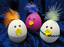 Aus Betoneiern basteln wir Hühner für die Osterdeko. Natürlich darf auch ein Betonhäsli oder anderes angemalt werden.